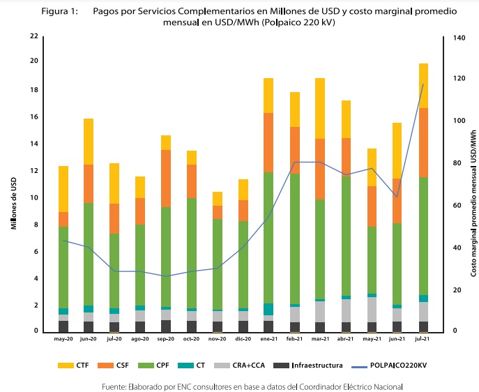 “Algunas de las razones coyunturales que explican esta alza, se encentran en el incremento en julio del costo marginal promedio mensual y que superó los 120 USD/MWh, desde niveles previos entre 65 y 85 USD/MWh. A esto se suman las condiciones hidrológicas del sistema producto de la sequía extrema por la que atraviesa el país, la que estaría afectando la disponibilidad de recursos hidráulicos para la prestación de servicios complementarios”, analiza ACENOR.
