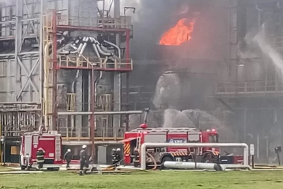 Según se pudo saber, el siniestro se desarrolló a partir de las 15:30 en la unidad Toping D, utilizada para separar el combustible del hidrocarburo, donde los bomberos controlaron las llamas.