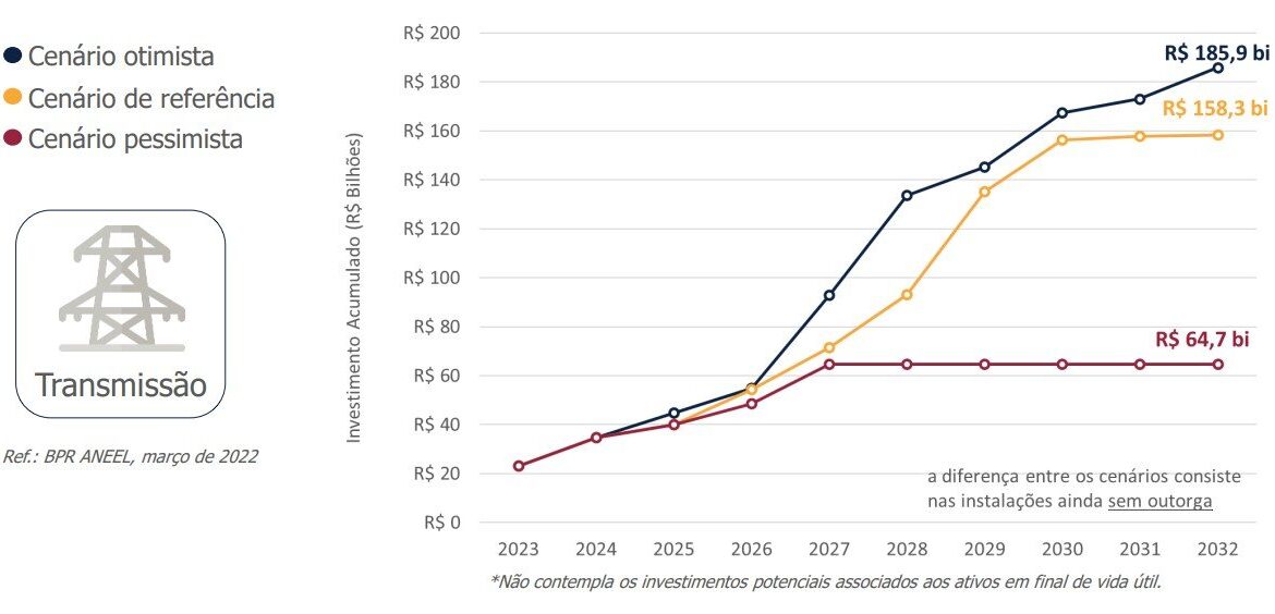 El escenario de referencia plantea una inversión acumulada de R$ 158,3 mil millones al 2032. El optimista prevé una suma de dinero de casi R$ 186 mil millones, mientras que en una circunstancia más pesimista, sólo habrá un acumulado de R$ 64,7 mil millones de las obras que ya fueron concesionadas.