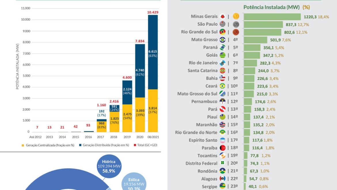 Cada mes, ABSOLAR analiza y consolida los datos del sector y produce una infografía con el escenario de la energía solar fotovoltaica en el país. En su última versión reveló que Brasil alcanzó los 10429 MW de potencia solar fotovoltaica instalada.