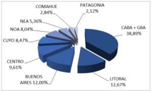 En el siguiente gráfico se observa la proporción que corresponde a cada región, en relación al total de la demanda del país:
