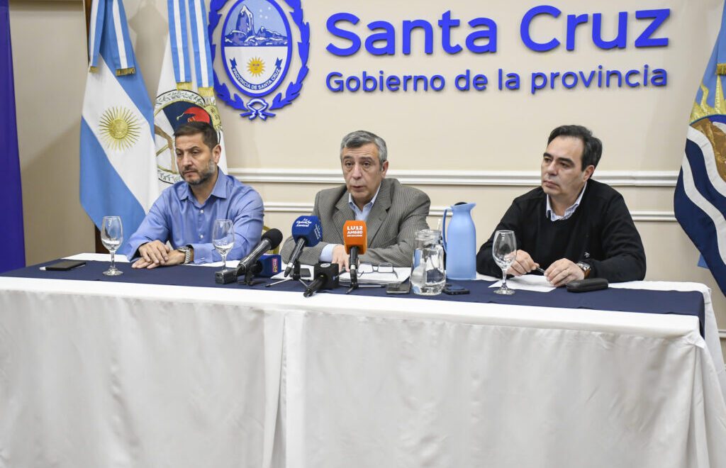 Autoridades del Poder Ejecutivo, encabezados por el ministro de Energía y Minería, Jaime Álvarez, acompañado por el presidente de FOMICRUZ, Oscar Vera, y el secretario de Estado de Fiscalización y Control Ambiental Energético y Minero, Gastón Farías, brindaron una conferencia de prensa, en la que se abordaron los principales aspectos relacionados al acuerdo con la empresa YPF SA, tendientes a la cesión de áreas convencionales que explotaba la operadora en la Cuenca del Golfo San Jorge.