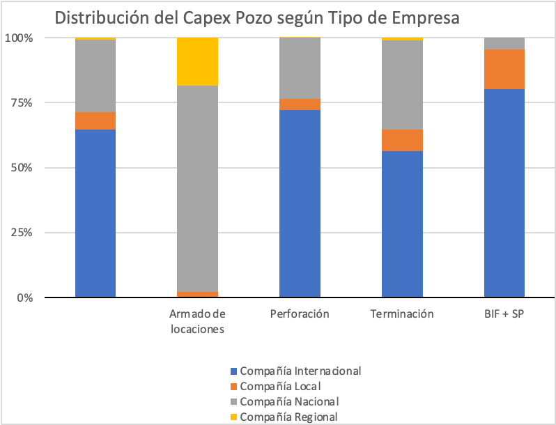 El 56% de esta etapa es realizado por empresas internacionales, principalmente por la provisión de servicios de fractura, wireline y tapones de fractura.