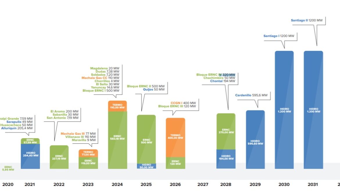 La actualización del Plan Maestro de Electricidad de Ecuador plantea una ampliación ambiciosa del parque de generación por más de 6000 MW al 2031. Y, según detalla su anexo, estas nuevas inversiones no se harán si no es a partir de energías “limpias” (renovables y gas) que permitan una alineación con el compromiso por el cuidado del medio ambiente y la sostenibilidad energética.