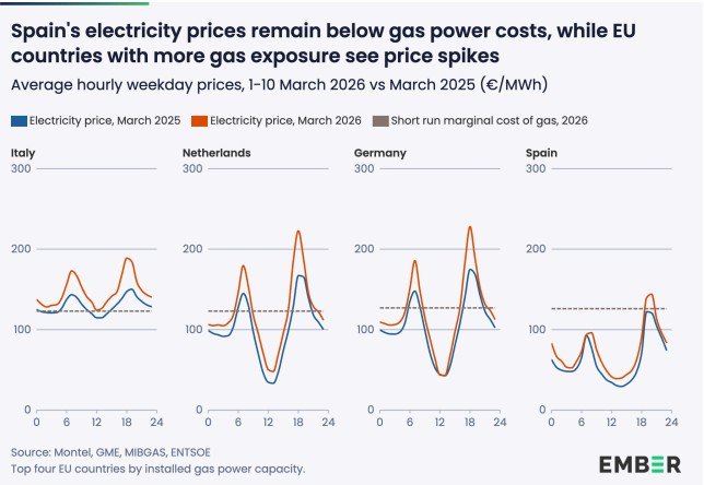 Rosslowe también señaló que el caso español demuestra cómo las energías renovables pueden actuar como un escudo frente a la volatilidad del gas, algo especialmente relevante en un contexto global que ya experimentó dos grandes shocks de precios fósiles en apenas cinco años.