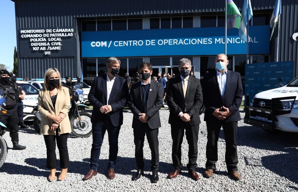 La firma del Convenio se realizó en el Centro de Operaciones y Monitoreo del Municipio de Almirante Brown con la presencia del gobernador de la provincia de Buenos Aires, Axel Kicillof; el ministro de Seguridad provincial, Sergio Berni; el intendente de Almirante Brown, Mariano Cascallares; y el presidente de YPF, Pablo González, entre otros funcionarios y funcionarias provinciales y municipales.
