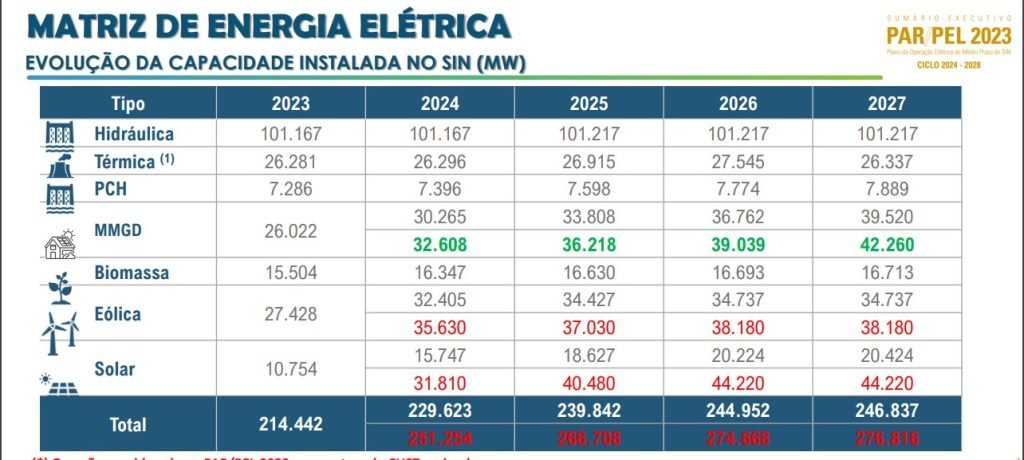 “Al cierre de 2027, se estima que la capacidad instalada del SIN totalizará 246,8 GW, de los cuales alrededor de 55 GW provendrán de plantas eólicas y fotovoltaicas centralizadas”, asegura el PAR/PEL 2023.