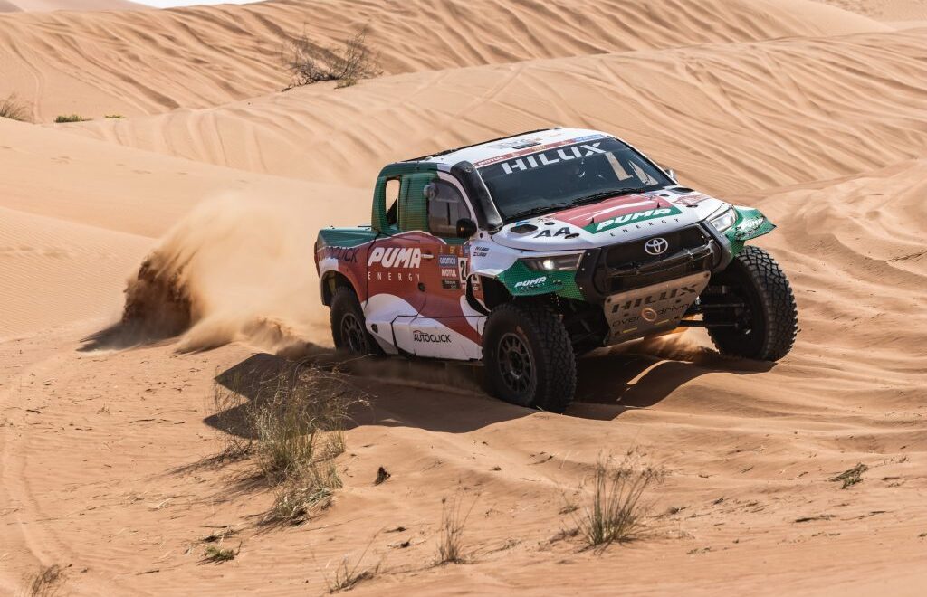 La 7ª etapa del Dakar 2023 se modificó por los inconvenientes que generó el mal clima y únicamente participaron las categorías autos y camiones. Se desarrolló la “media maratón”, una prueba especial que se efectuó sobre un recorrido de 333 kilómetros, con partida desde Riad y llegada a Al Duwadimi. El Puma Energy Rally Team se lanzó a la aventura y, con una asistencia, continuó en la competición gracias a su gran trabajo.