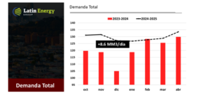 Si consideramos la demanda total, se proyecta para este verano un incremento en torno a los 8,6 MMm³/día.