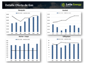 - Neuquén: Incremento de 6 MMm³/día en línea con las tendencias de los últimos meses, alcanzando un promedio de 84,4 MMm³/día.