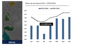 Consolidando las cuencas, proyectamos un incremento en la oferta total del orden de 9,0 MMm³/día con respecto al mismo periodo del año anterior.