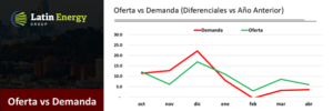 Ahora mostramos las diferencias del oferta y demanda para el periodo octubre abril. Donde podemos observar que la oferta demanda adicional se ubica por encima de la oferta adicional, pero ya en enero 2025 eso se revierte gracias a Fénix.