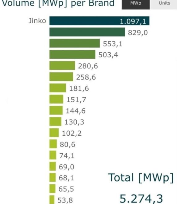 Brasil celebra el ingreso de 5274,3 MW de potencia solar fotovoltaica en los tres primeros meses del 2022. De aquel total, Jinko Solar lideró en módulos entregados con un récord de 1097,1 MW significando el 20,8 % del mercado y destacándose entre otros fabricantes