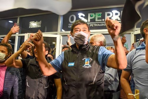 Rucci ayer festejando su cómodo triunfo en las elecciones internas del sindicato de petroleros privados de Neuquén.