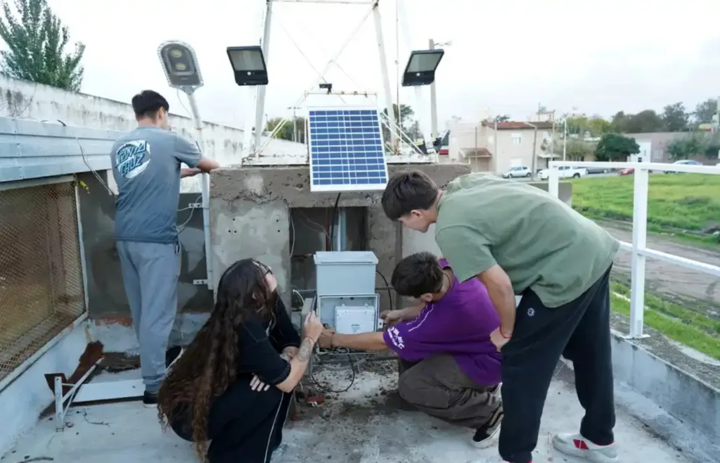 El recorrido comenzó en 2024, cuando estudiantes y docentes diseñaron e instalaron el primer aerogenerador y desarrollaron una red interna de 12 V para alimentar distintos sectores del edificio. Ese mismo año se incorporó equipamiento donado por empresas privadas y se colocó un termotanque solar, lo que fortaleció la formación en energías renovables de la Tecnicatura y de la Secundaria Profesional (EPS).