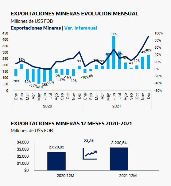 Exportaciones. Informe Mensual de Coyuntura Minera Diciembre 2021.