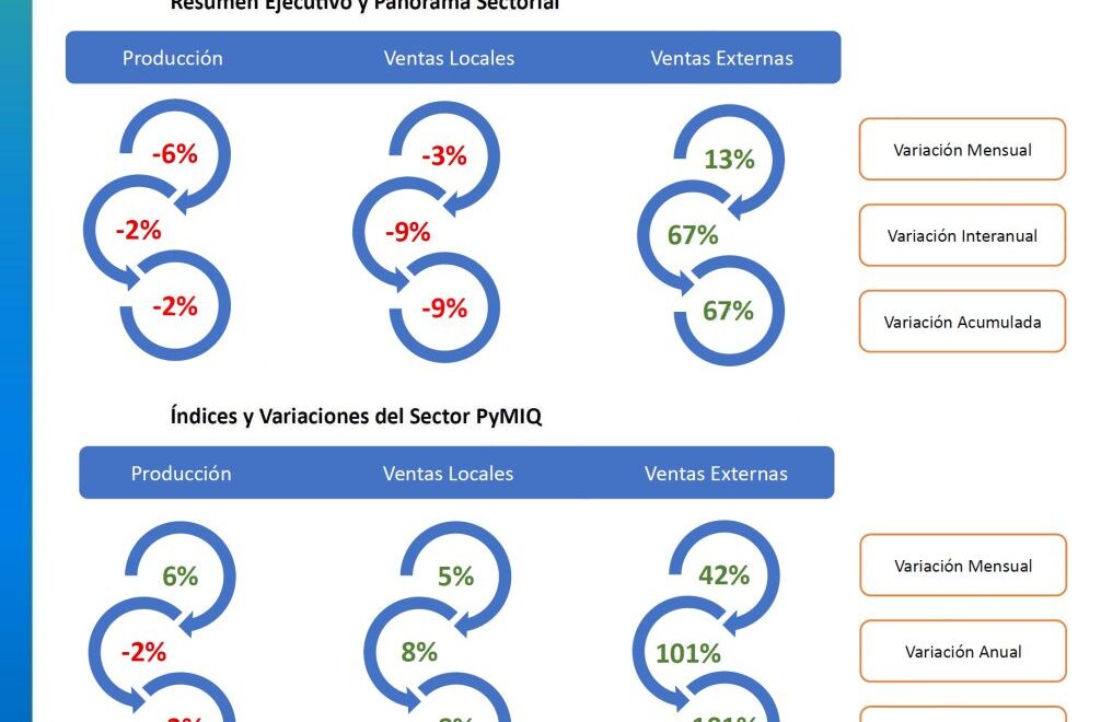 En el segmento PyMIQ, la dinámica fue aún más marcada. La producción creció 6% mensual, aunque cayó 2% interanual. Las ventas locales aumentaron 5% frente a diciembre y 8% en la comparación anual. Sin embargo, el dato más relevante fue el salto exportador: las PyMIQ incrementaron sus ventas externas 42% mensual y 101% interanual, consolidándose como un actor clave en la generación de divisas para la industria química.