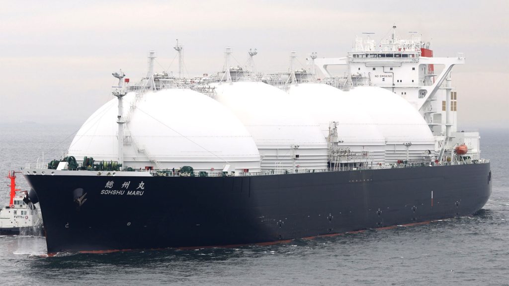 The liquefied natural gas (LNG) tanker Sohshu Maru approaches Jera Co.’s Futtsu Thermal Power Station, unseen, in Futtsu, Chiba Prefecture, Japan, on Friday, Dec. 17, 2021. North Asia spot LNG prices hovered near $40/mmbtu, with buyers in the region satisfied by inventory levels heading into winter, while European prices traded at a premium to Asian values for a third day. Photographer: Kiyoshi Ota/Bloomberg