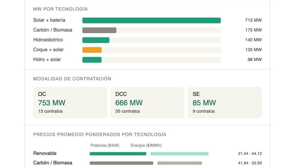 El proceso también evidencia una fuerte participación de empresas privadas, principalmente en proyectos renovables y soluciones con almacenamiento.