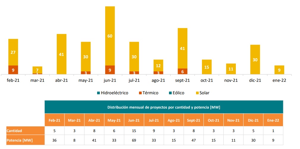 Todos los emprendimientos de generación, a excepción de una central eólica, corresponden a Pequeños Medios de Generación Distribuida (PMGD), es decir, proyectos de hasta 9 MW de potencia nominal.