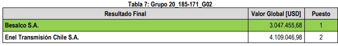 Finalmente, la Compañía Transmisora del Norte Grande S.A. se quedó con la “Nueva S/E Seccionadora Los Poetas y Nueva Línea 1×66 kV Algarrobo – Los Poetas”, siendo única oferente, proponiendo una oferta de 555.318 dólares.