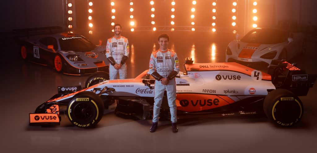 El equipo llevará en el Gran Premio de Mónaco, la combinación de colores celeste junto con una franja naranja, basada en el diseño clásico de Gulf, durante todo el fin de semana de carreras del Gran Premio de Mónaco. La traza estará presente en ambos autos MCL35M, en los trajes de Lando Norris y Daniel Ricciardo, en el uniforme del equipo de carrera, y en todas las plataformas de redes sociales del equipo. Además, Lando y Daniel usarán cascos de carreras con diseños retro personalizados, especialmente creados para el evento, que se sortearán para el socio benéfico de salud mental del equipo, Mind.