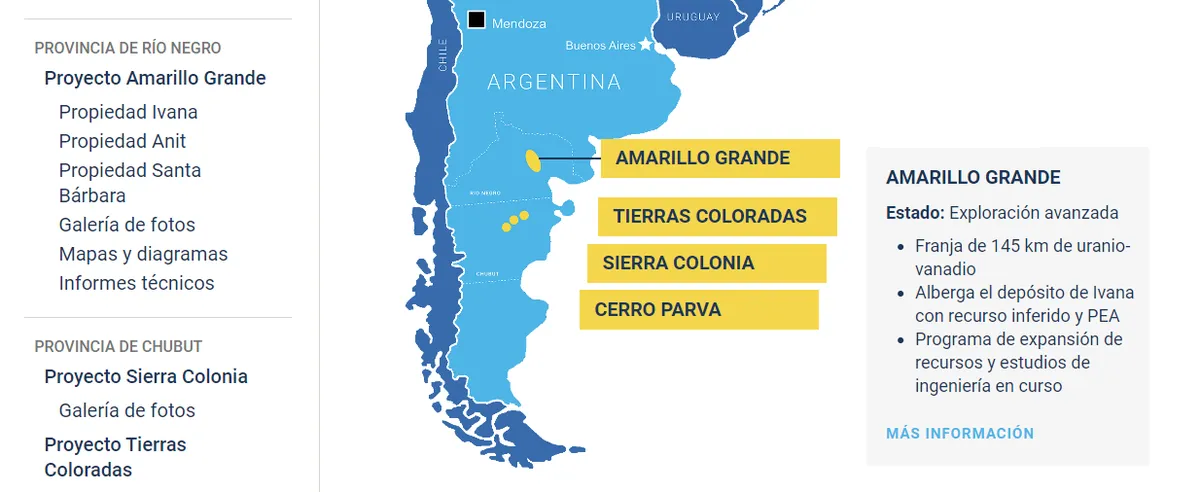 En 2012, la entonces Areva había firmado un acuerdo de asociación con la firma argentina Sky Blue para la exploración de uranio en las provincias de Río Negro y Chubut. Más específicamente, en los proyectos Ivana, Sierra Colonia y Tierras Coloradas, este último descubierto en 2011. Más recientemente, Blue Sky Uranium se asoció en nuestro país con una subsidiaria de la Corporación América, la empresa Abatare Spain, para la operación del yacimiento rionegrino Ivana.