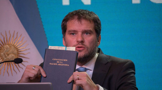 Bernal exhibe una Constitucional en una audiencia. Su gestión en el Enargas estuvo marcada por la desidia.