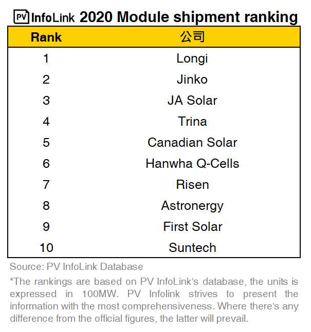 Dado que los grandes fabricantes fotovoltaicos han establecido un ambicioso objetivo de envíos para 2021, se espera que la cuota de mercado de los 10 mayores fabricantes crezca junto con su expansión de la capacidad, ocupando más del 90% de la demanda mundial.