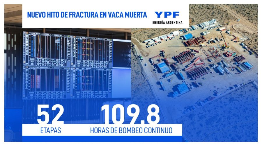Pozos de largo alcance Ramas laterales de 5.000 metros: El hito de fractura se complementa con los nuevos récords de perforación que YPF está ejecutando en la misma área, donde ya se operan pozos con ramas laterales de 5.114 metros. La combinación de perforación horizontal extrema con fractura continua de alta intensidad es el motor que permitirá a la petrolera de bandera alcanzar su meta de u$s 18.000 millones en exportaciones proyectadas para este 2026.