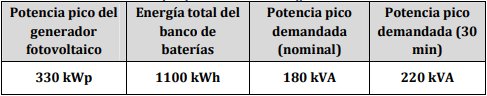 Y acorde a los perfiles de demanda de energía y potencia, valores de insolación y condiciones climáticas y ambientales, en este caso se definieron las siguientes especificaciones mínimas garantizadas que deberá satisfacer la planta solar con acumulación y reserva fría: