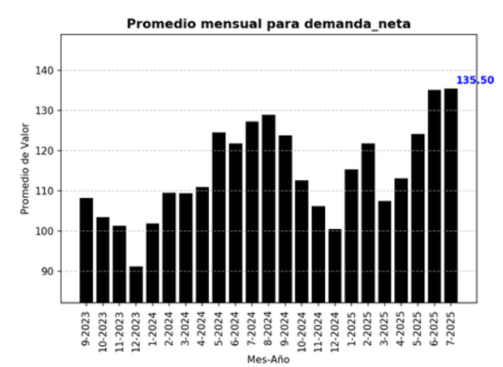 En el siguiente gráfico se muestra la demanda neta, donde puede observarse que los incrementos están mayormente alineados con el consumo residencial.