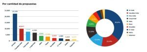 También se observa una diferencia en los porcentajes de propuestas financiadas en ambas gráficas.