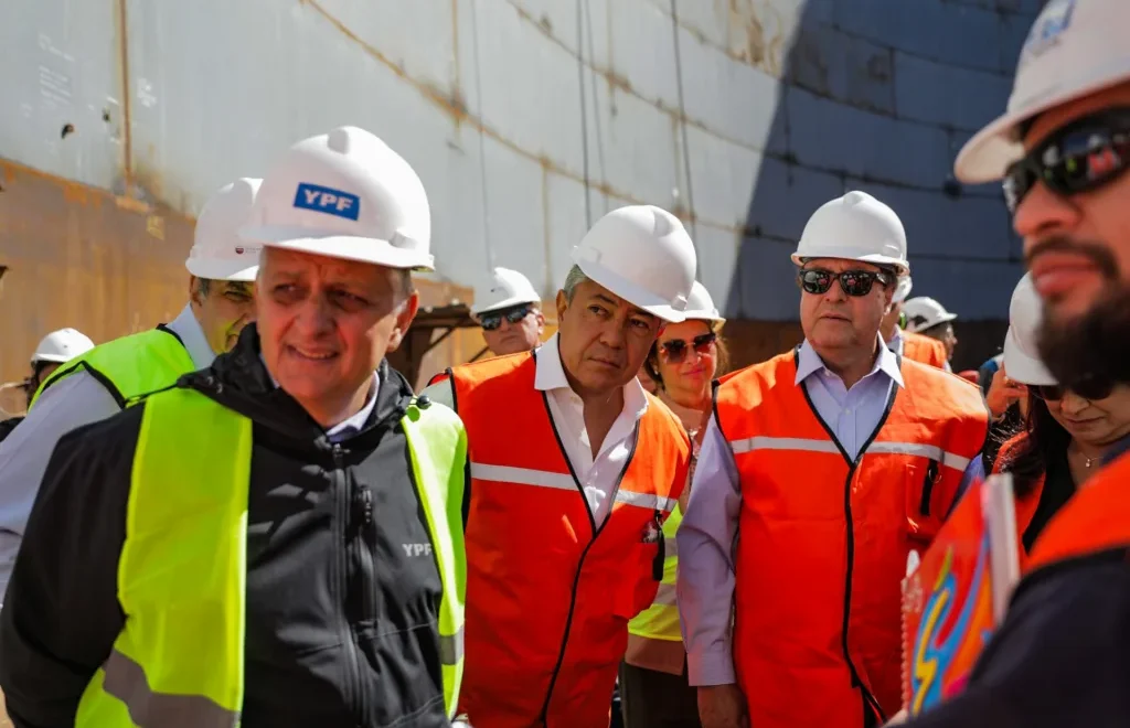 “Estamos construyendo algo que va a redefinir el futuro de nuestro país”, agregó Marín durante la recorrida de la obra que incluyó la visita a los tanques de almacenamiento de 120.000 metros cúbicos (m3) que serán el corazón operativo de la terminal de exportación.