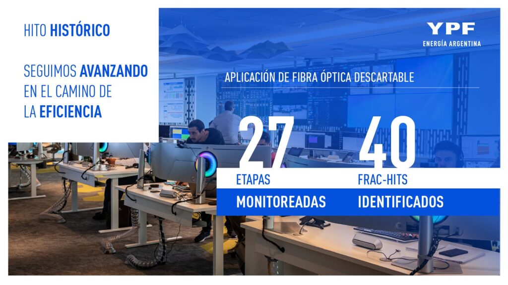 La petrolera YPF comenzó a aplicar en sus operaciones de fractura en Vaca Muerta tecnología de fibra óptica descartable para el monitoreo en tiempo real de cada una de las etapas de estimulación, de acuerdo a lo anunciado por su presidente y CEO, Horacio Marín. Esta experiencia se está llevando adelante con la empresa de servicios especiales Halliburton, y permite conocer en el mismo momento de la operación el impacto en el pozo y los aledaños.